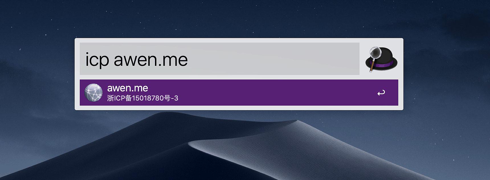 - keywrod 是我们要在搜索框中查询的前缀,比如我们要查询 awen.me 这个域名,我们就需要输入icp 然后在输入 awen.me 查询
