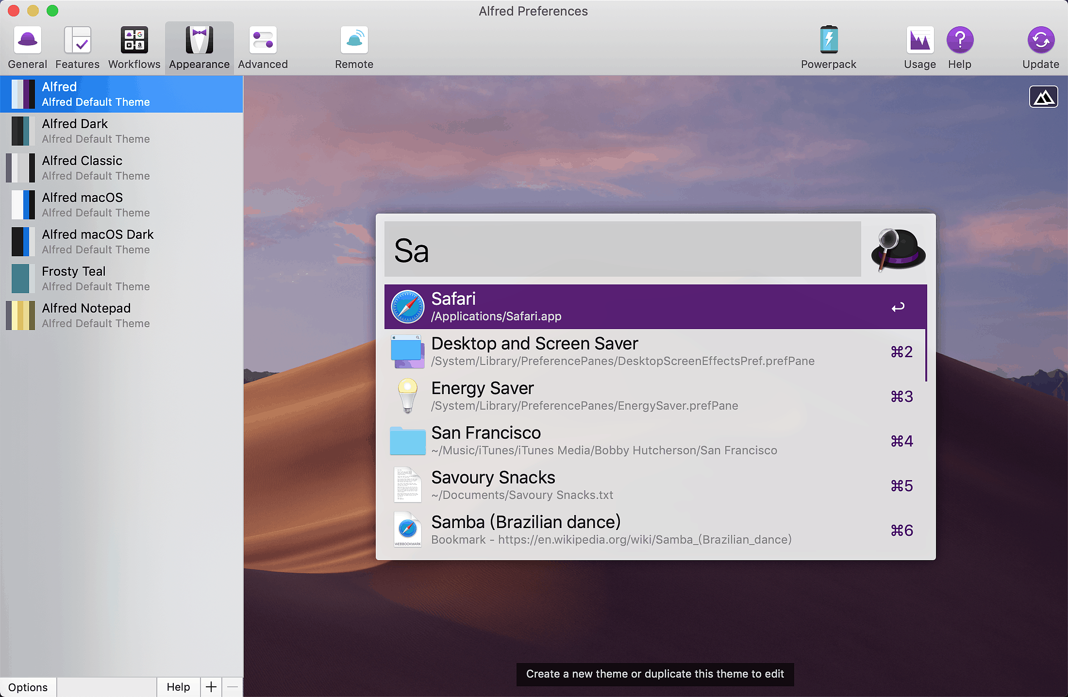 Alfred 是一个功能超级强大的工具,他除了能够搜索本地文件、应用还能经过定制后搜索互联网上的内容,除此之外,workflow 为用户提供了可定制化的服务,用户可以自行编写插件来实现查询。