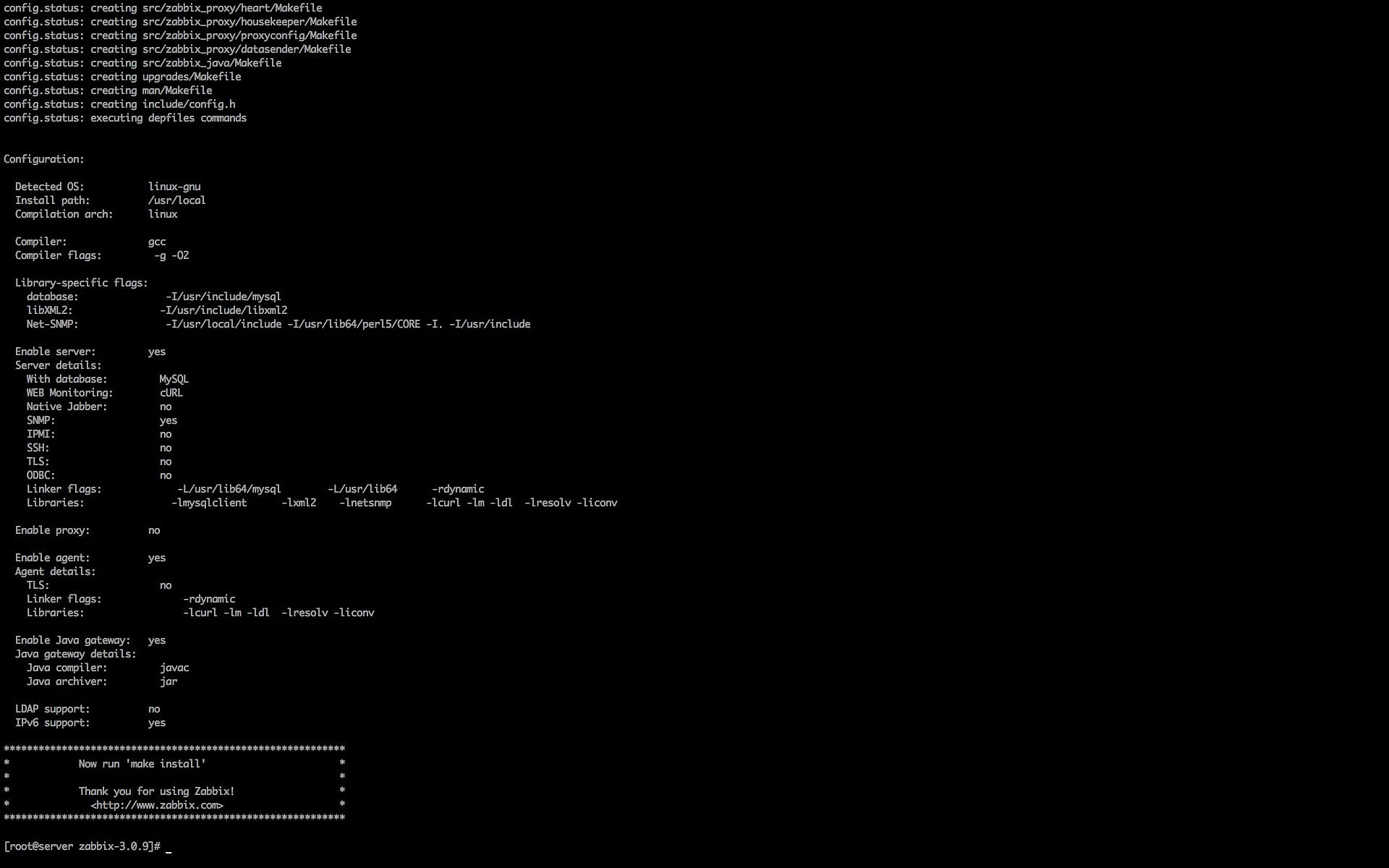 ./configure --enable-server --enable-agent --with-mysql --enable-ipv6 --with-net-snmp --with-libcurl --with-libxml2 --enable-java