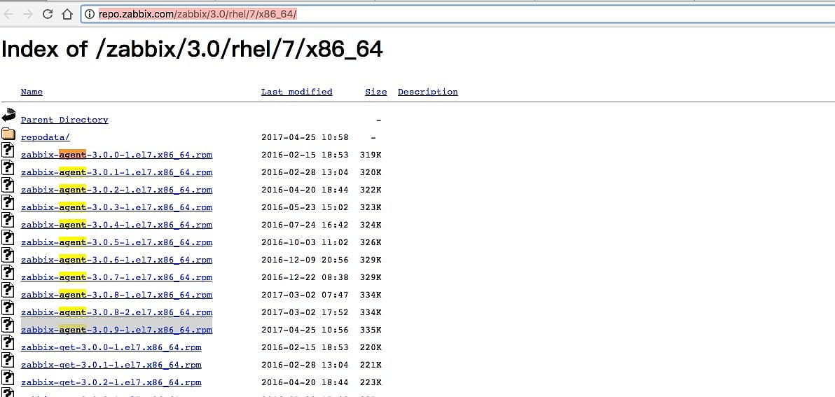 地址 http://repo.zabbix.com/zabbix/3.0/rhel/7/x86_64/