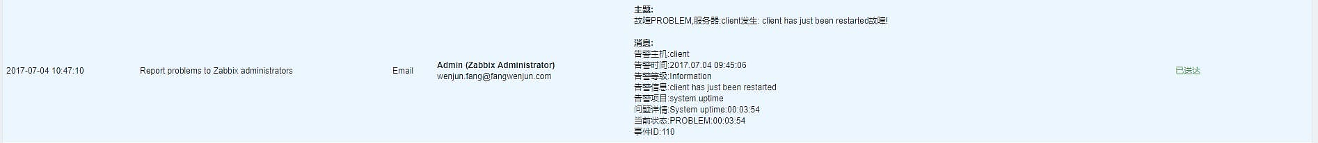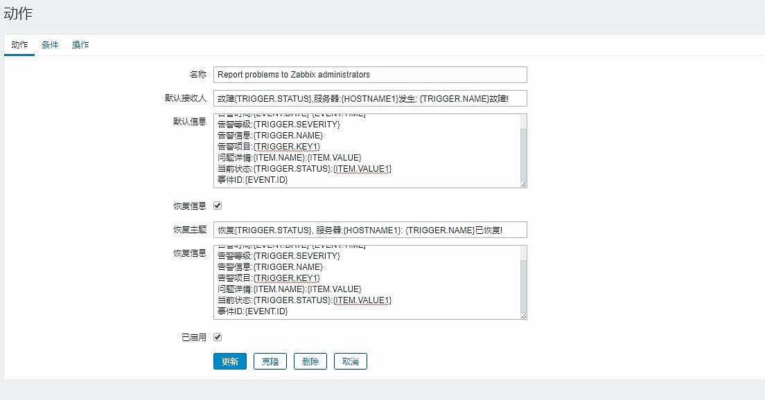 恢复 {TRIGGER.STATUS} , 服务器: {HOSTNAME1} : {TRIGGER.NAME} 已恢复!
