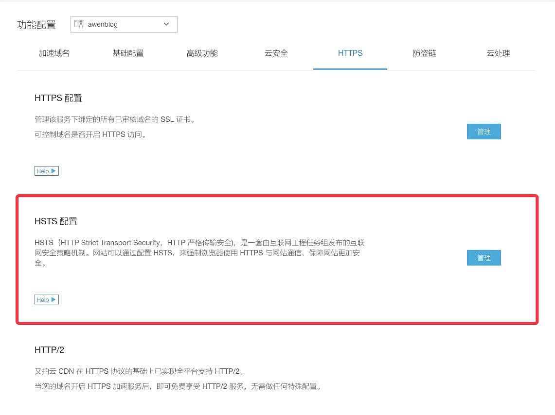1.找到对应的服务,切换到 HTTPS,可以看到 HSTS 的配置