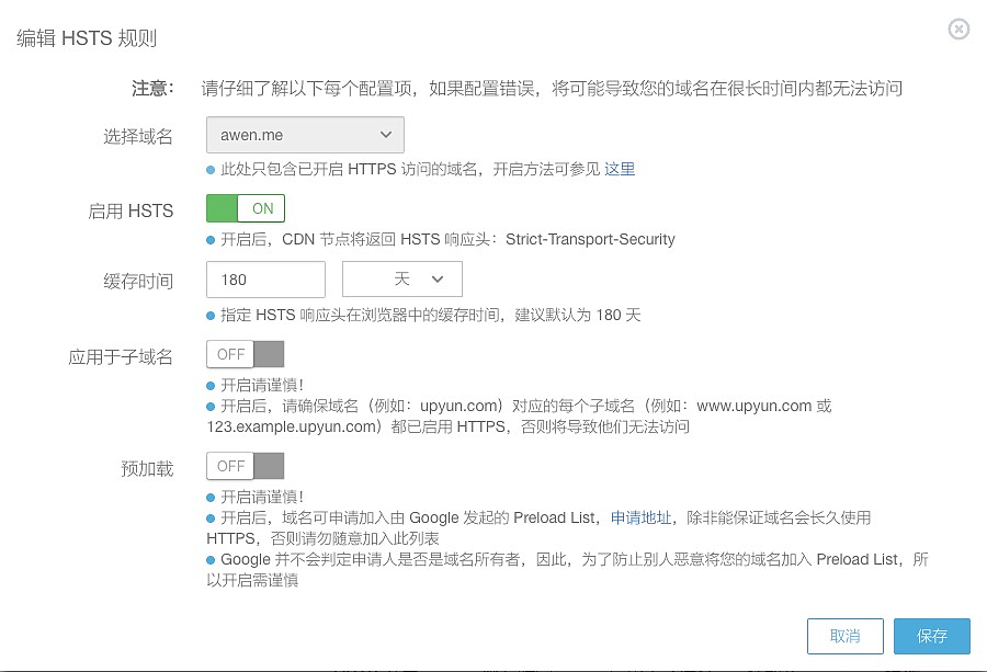 又拍云开启 HSTS