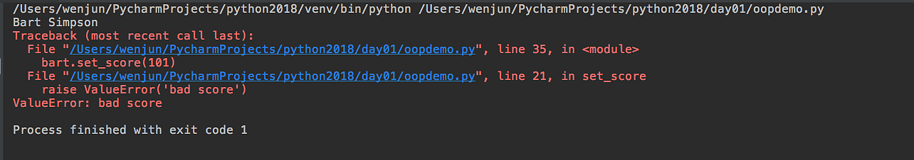 bart = Student('Bart Simpson',59) print(bart.get_name()) bart.set_score(101) print(bart.get_score())