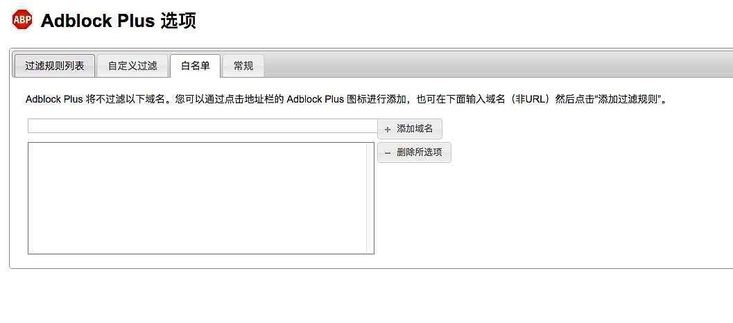 如果你有些网站不希望被屏蔽,你可以添加到白名单