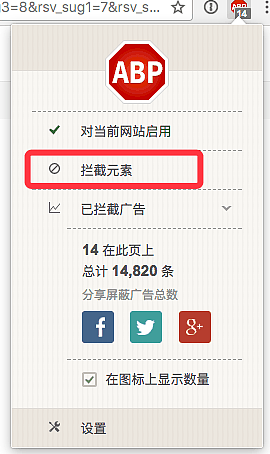 如果有些网站的广告没有被屏蔽,你希望将其屏蔽掉有两种方式: