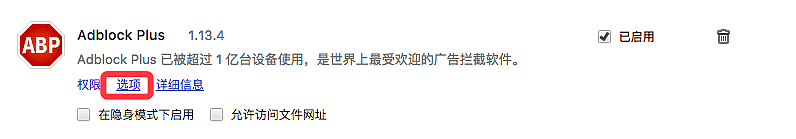 adblock 是一款开源的跨平台的广告过滤插件,它可以安装在各种常见的浏览器上对一些恶意烦人的广告进行屏蔽。