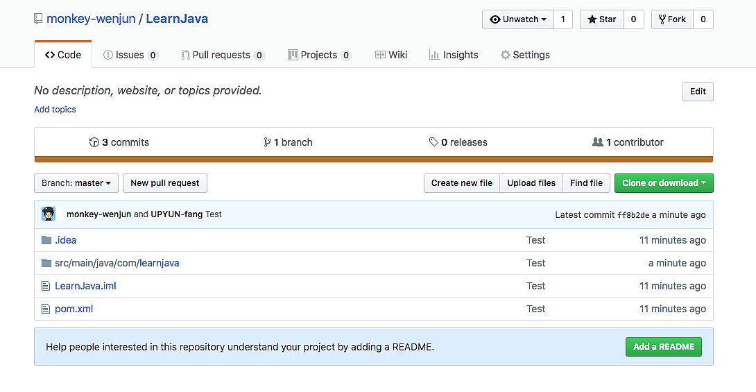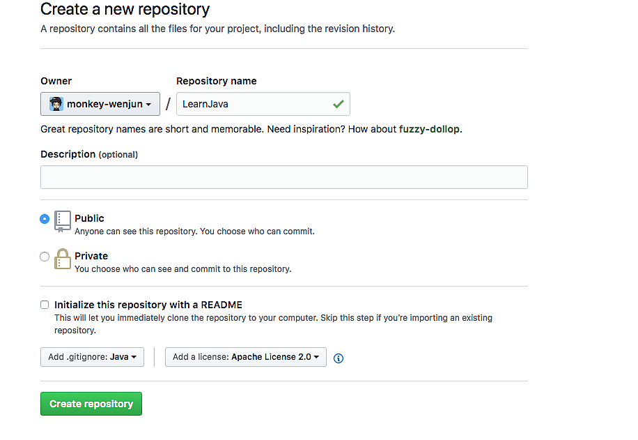 1.GitHub 创建一个仓库,比如叫 LearnJava