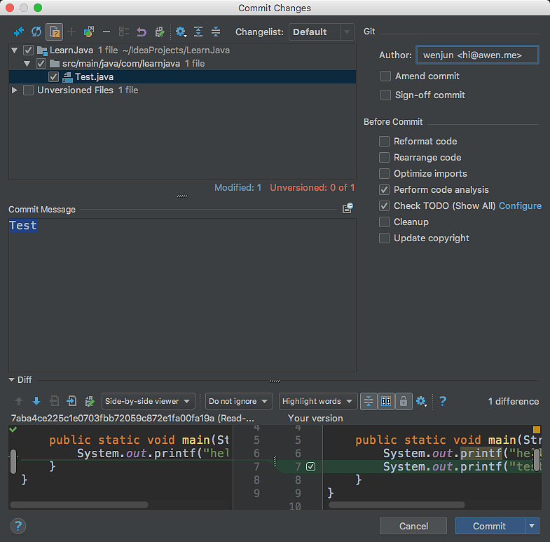 6.然后点击VCS-Git–add,Git-Commit Files,选择需要提交的文件,输入 commit message,点击 commit