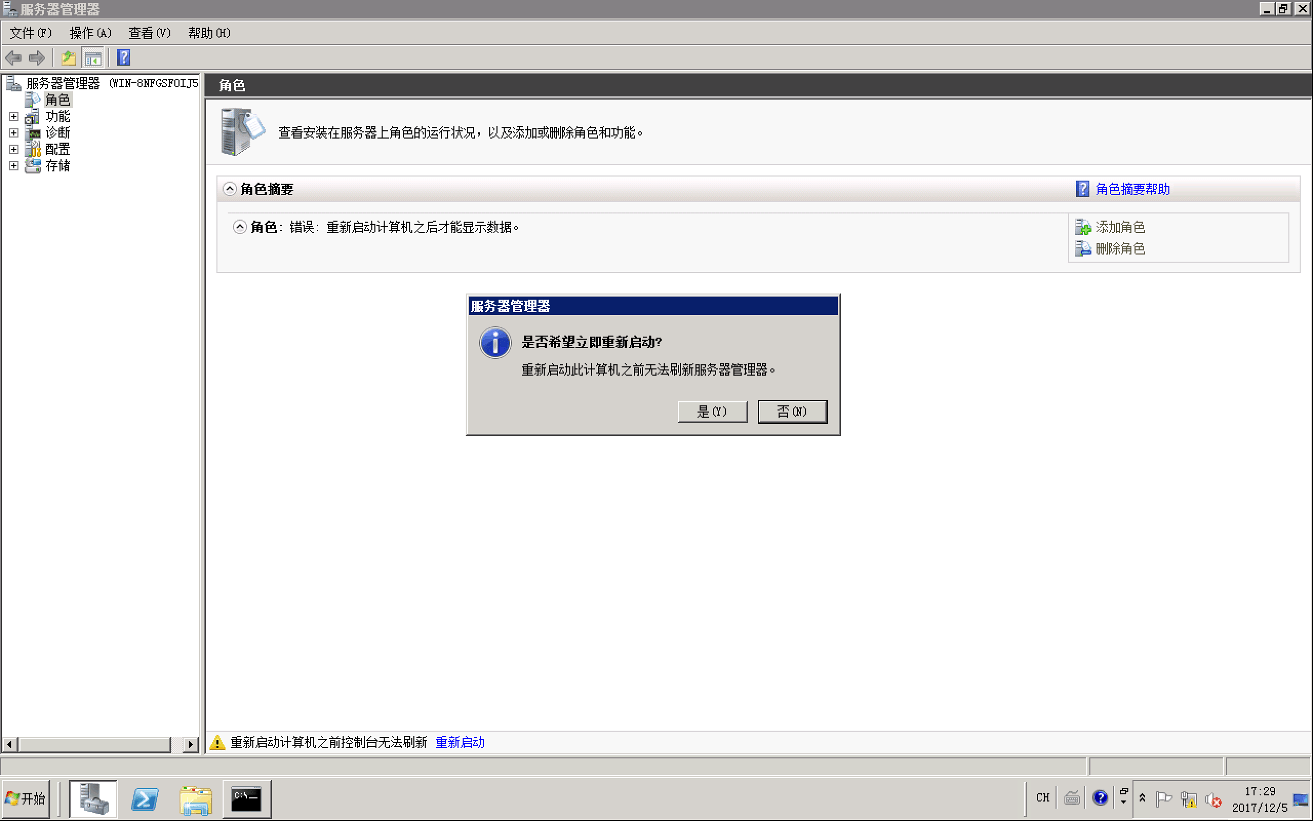1.从服务器管理器重启系统
