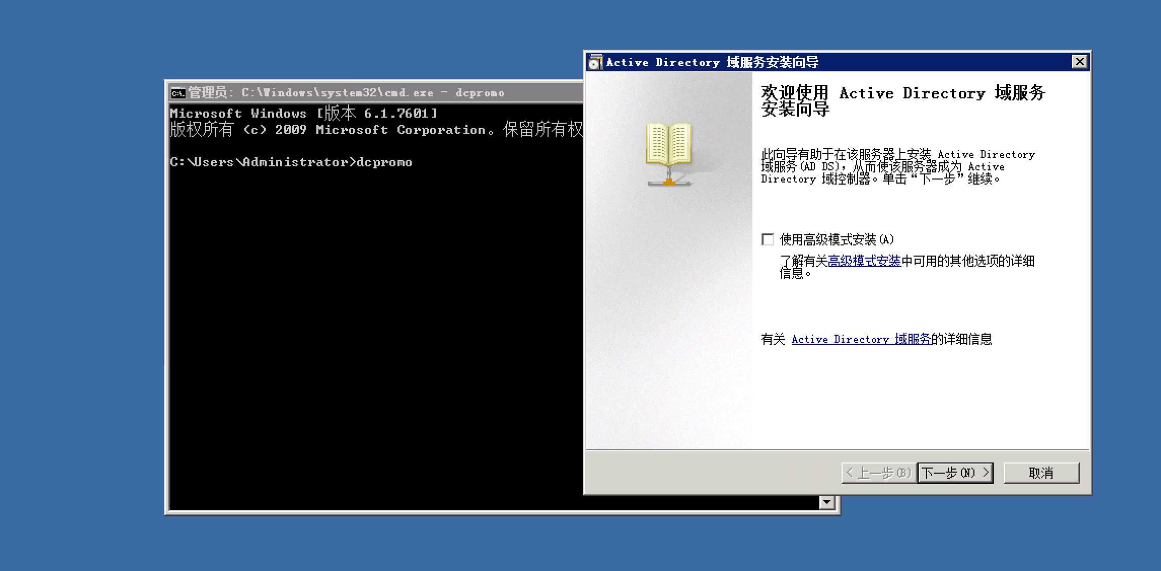 Windows 2008 按照 ad 时提示