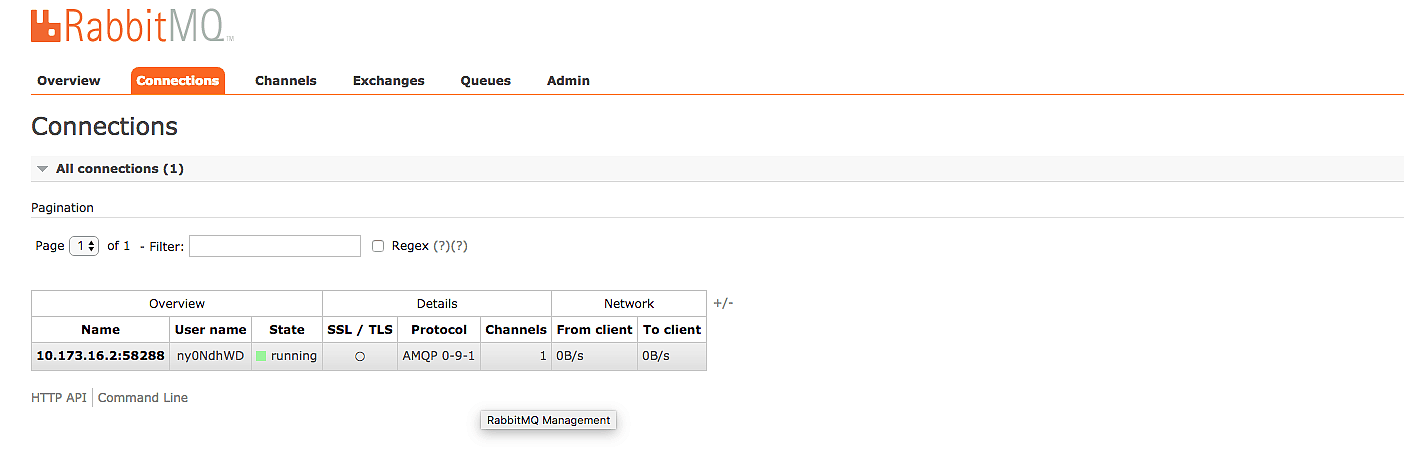 现在登录 web 管理平台,可以看到当前的连接情况、channel、queue 等信息。