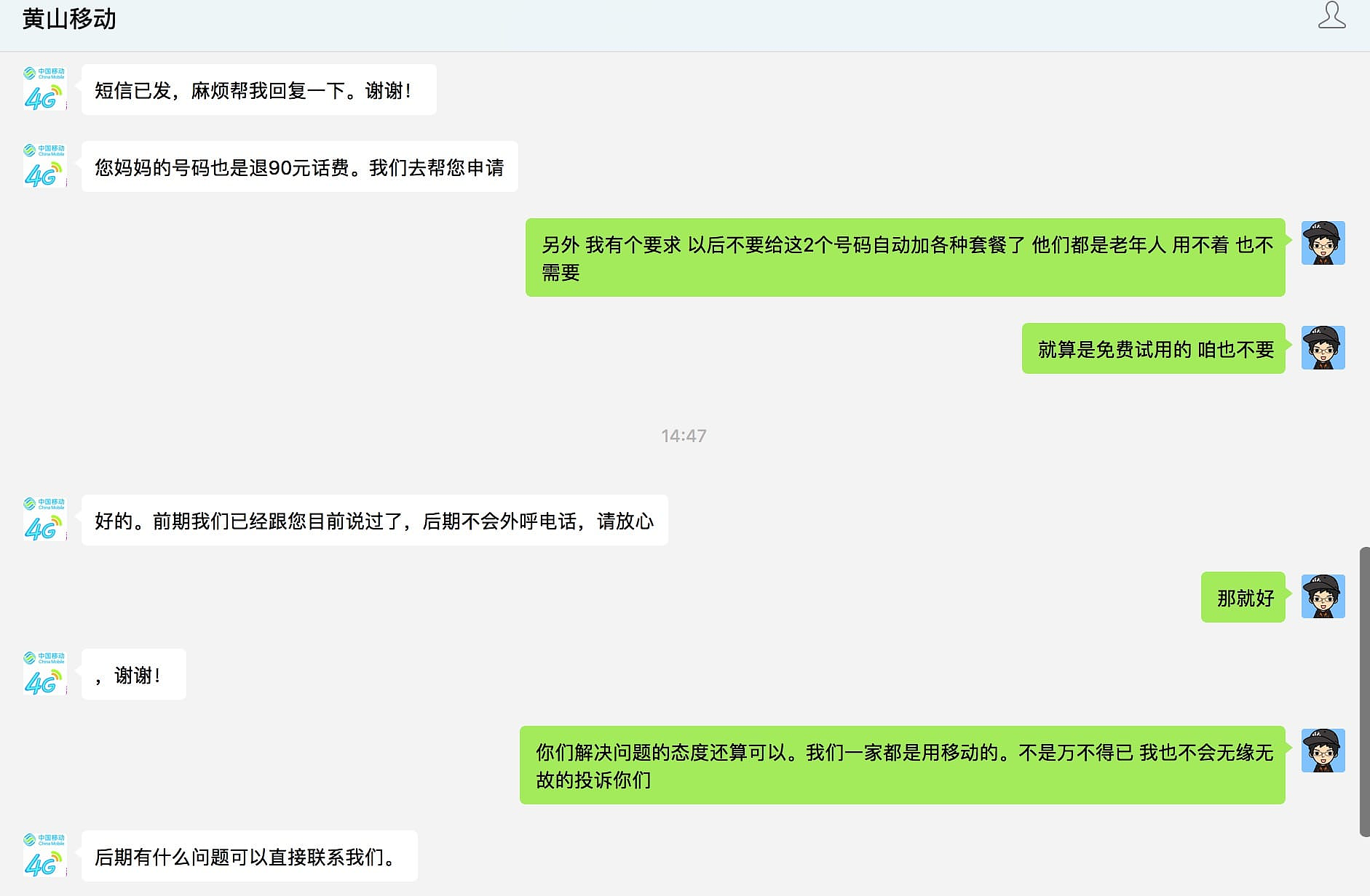 今天上班移动的给我打电话,我没接,结果他们加了我微信,告诉我处理完了,要我撤诉。