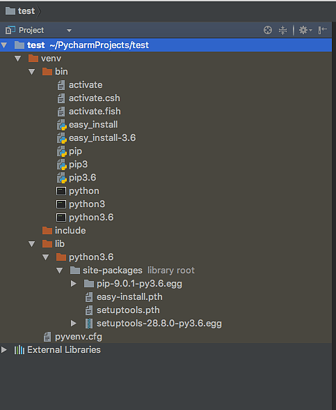 然后我们在项目左侧可以看到venv 的一个文件夹,这里面加载了你选择的 Python 版本以及一些基础的 Python 库