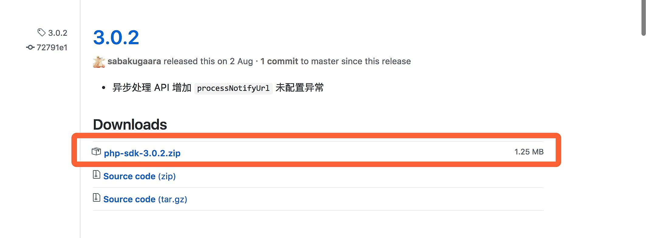 2.如果你不想安装 composer,可以下载源码包(注意需要下载 php-sdk-版本号.zip 格式的 zip 压缩包,不是 Source code 源码压缩包),解压后,项目中添加如下代码: