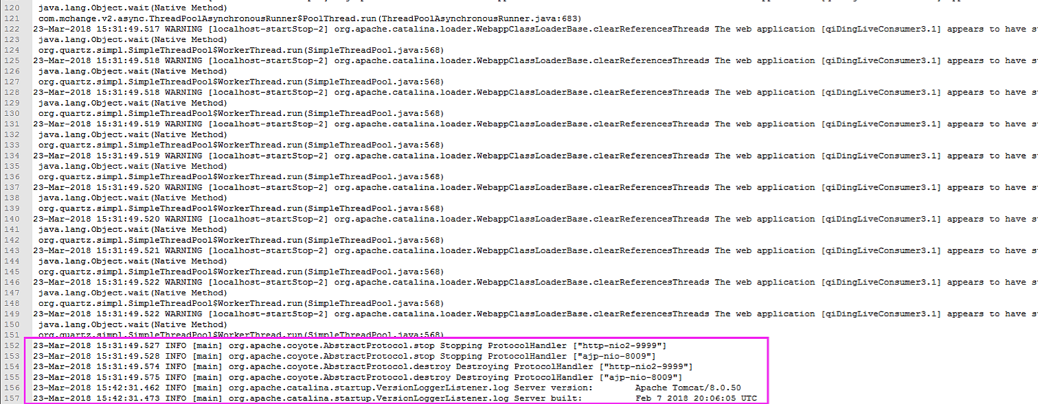不过那会查看 Tomcat 的日志可以看出来在15:31就一直包内存溢出到15:31:49 左右停止,15:42:31 启动,又似乎和 Tomcat 没多大关系