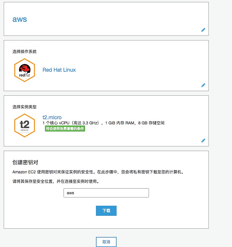 4.基本账户免费的服务器申请配置为1 个核心 vCPU(高达 3.3 GHz),1 GiB 内存 RAM,8 GB 存储空间