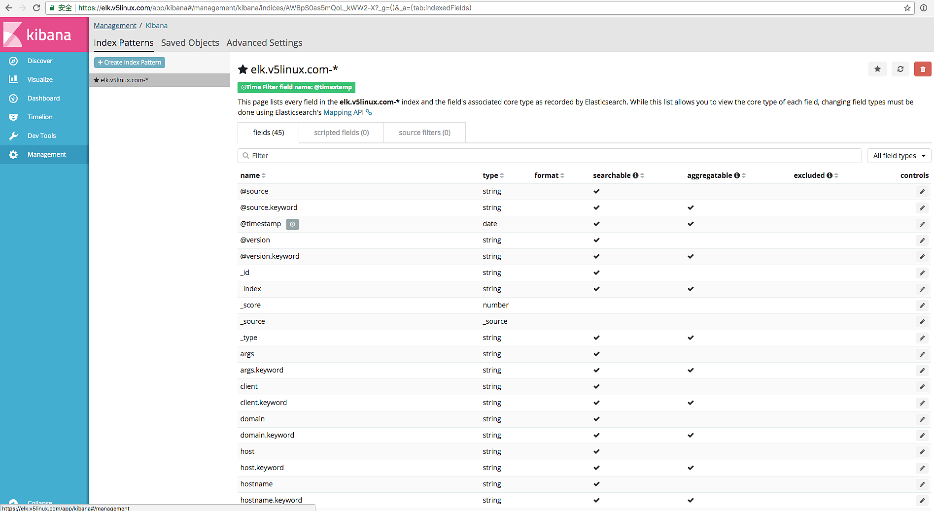 配置 index patterns