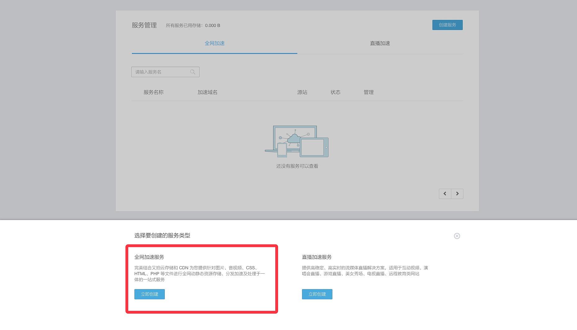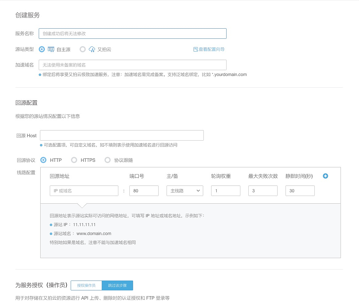 - 注册又拍云账号,登陆后台,创建一个服务