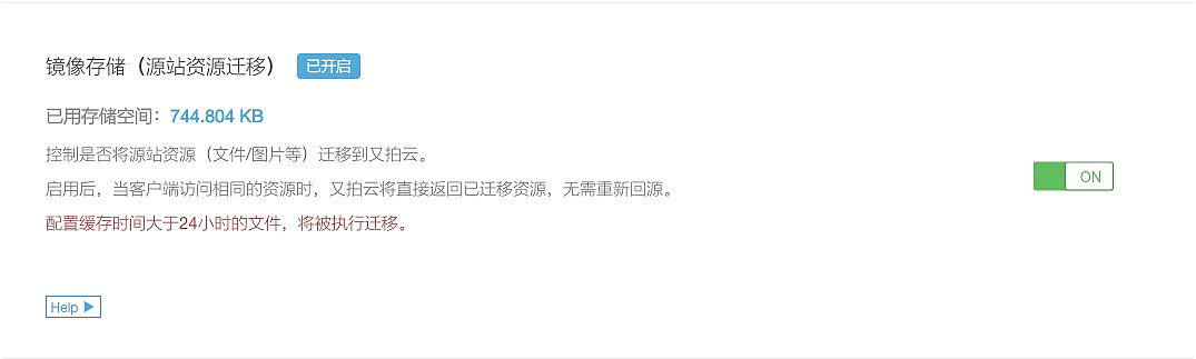 2.镜像功能,其实,虽然资源在源站,但是存储的文件一般不会变的,我们可以配置下镜像功能,让默认就从又拍云存储拿资源,如果存储文件丢失还可以回源拿