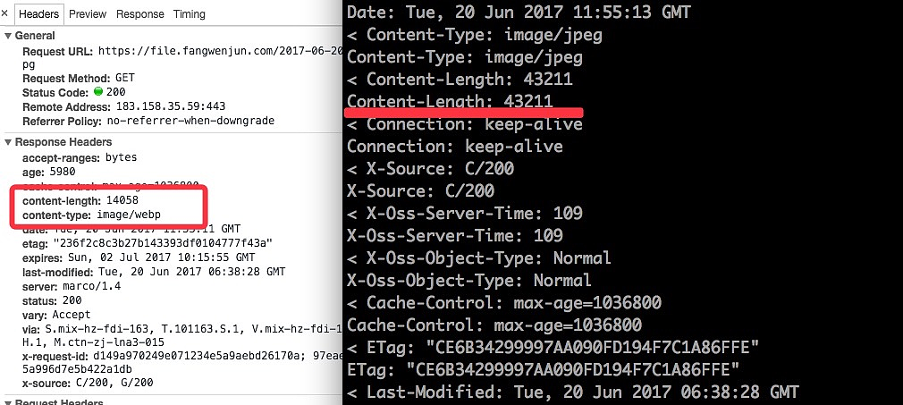 阿里云也有免费的证书可以申请,但是都是要提交公钥私钥,一般期限是一年,但是到期后你又要去后台删除证书,然后重新提交,很麻烦,没有又拍云的省心。 - 自适应 Webp,这个功能非常棒,又拍云 CDN 会在请求到达CDN 边缘时判断图片类型以及浏览器类型,如果浏览器支持 webp,就会把图片转换成 webp 然后返回给客户端,这样来,可以省下不少的流量费呢!