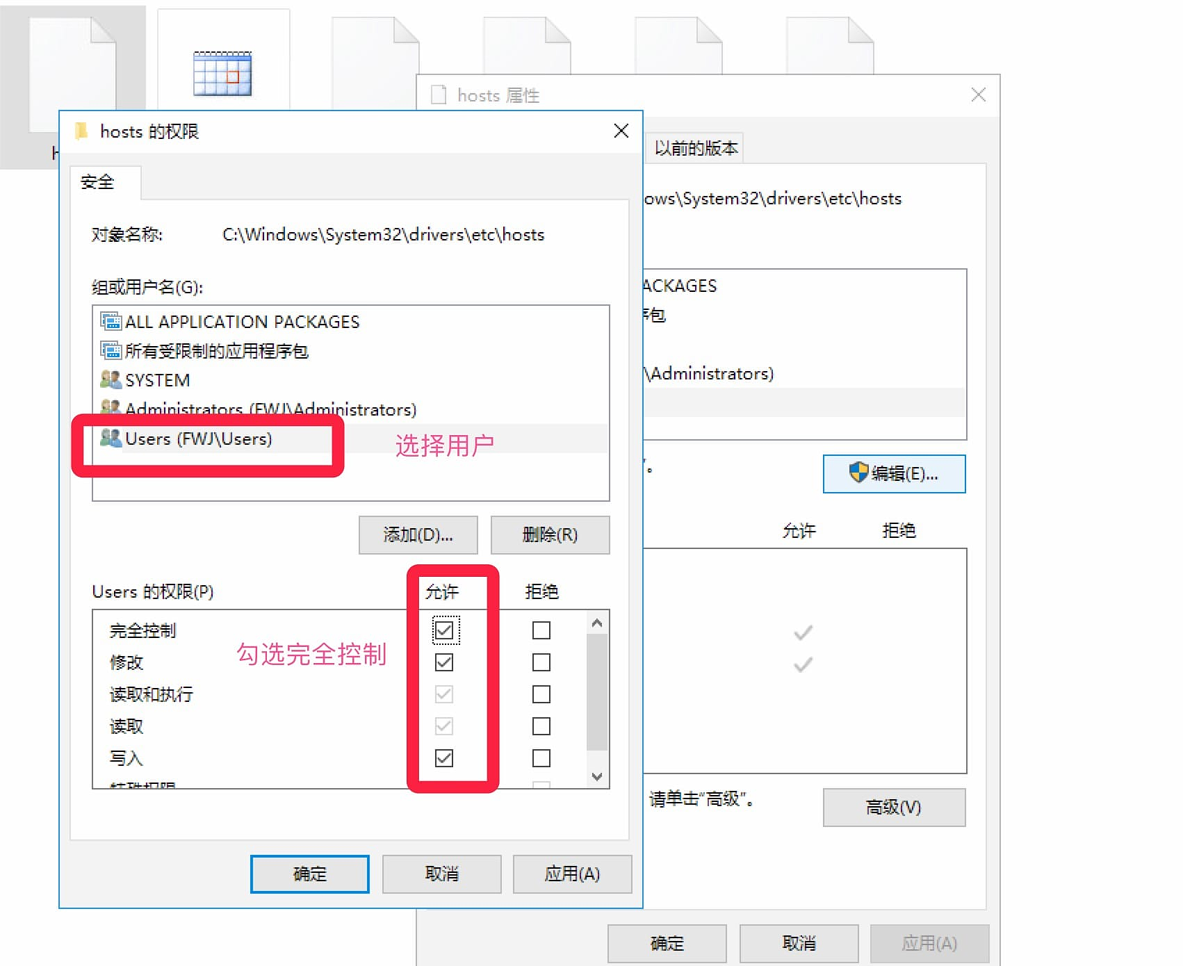 然后授权用户拥有读写执行权限,如果你不懂,直接勾选完全控制好了