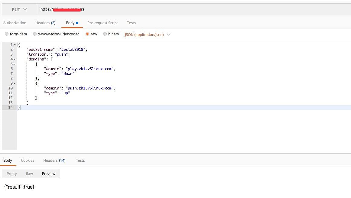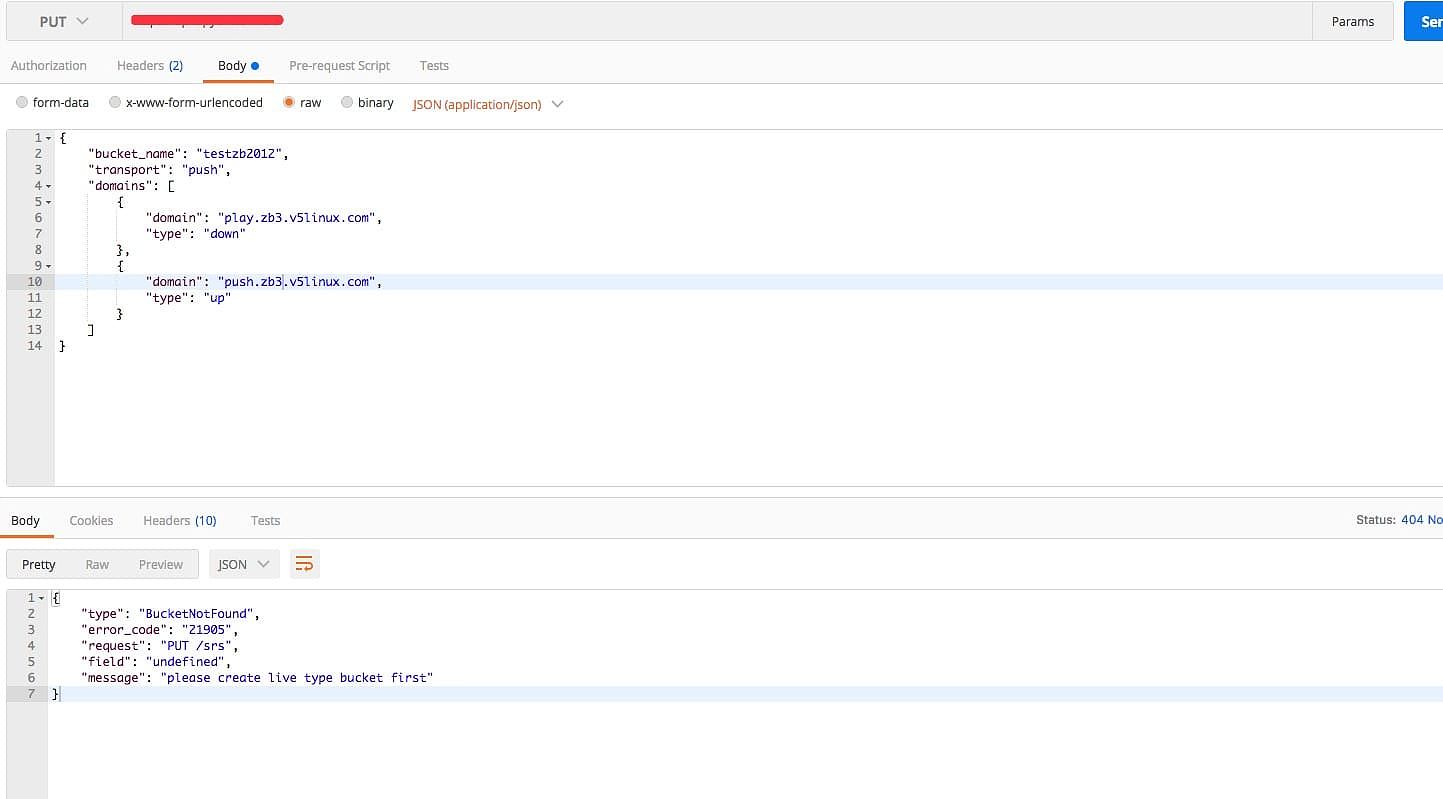 那么我们可以看到,客户端先调用api/buckets接口创建一个直播类型的服务