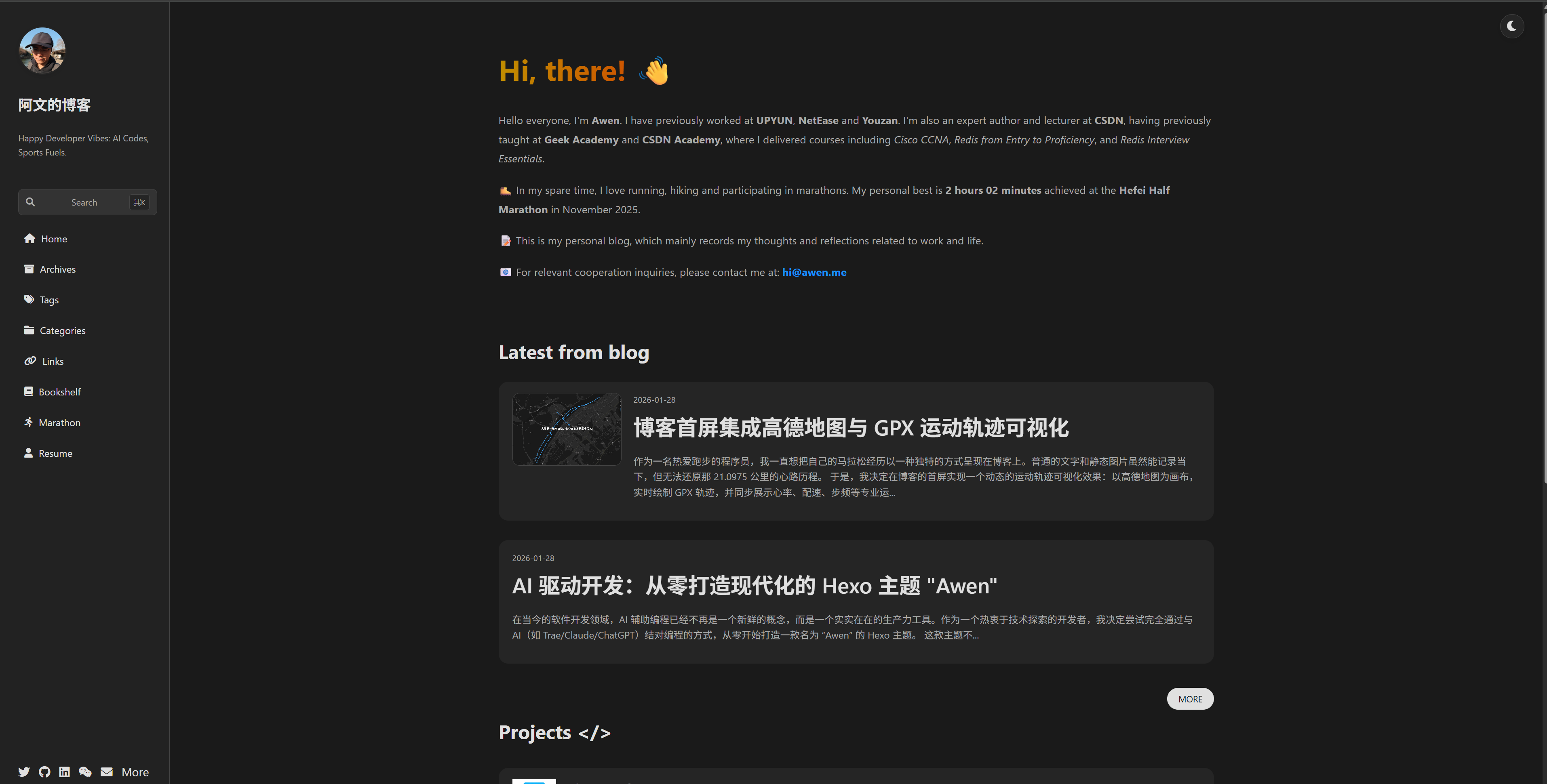 传统的 Hexo 主题大多偏向于纯文本内容的展示,而我希望 “Awen” 主题能体现我的个人特质:“代码与运动”。因此,确立了以下核心特性: