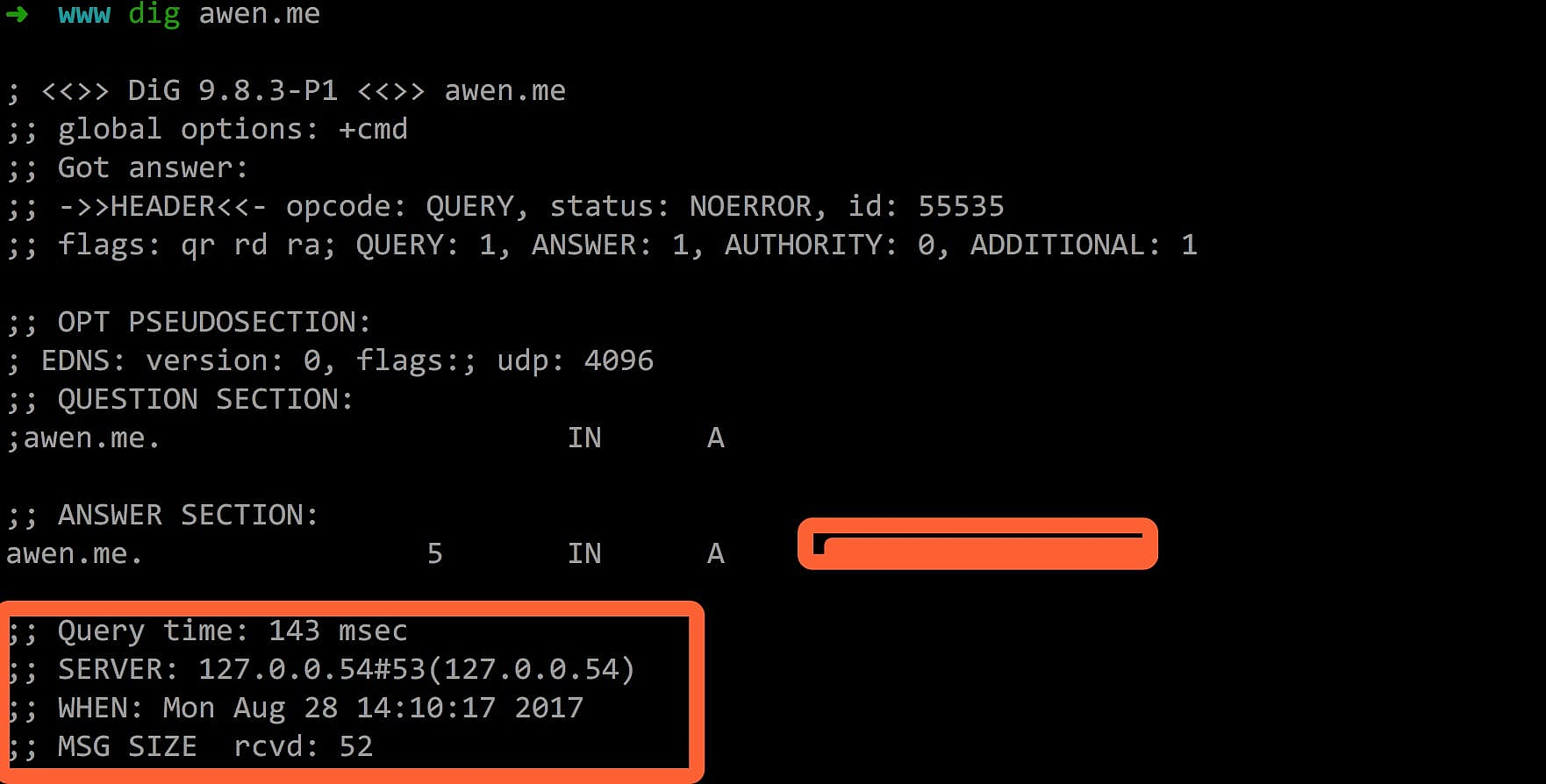 ➜ ~ dig awen.me +trace