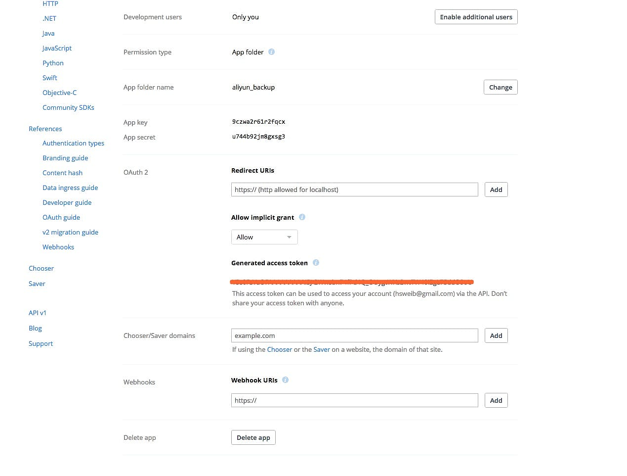 When your new App is successfully created, please click on the Generate button under the 'Generatedaccess token' section, then copy and paste the newaccess token here: