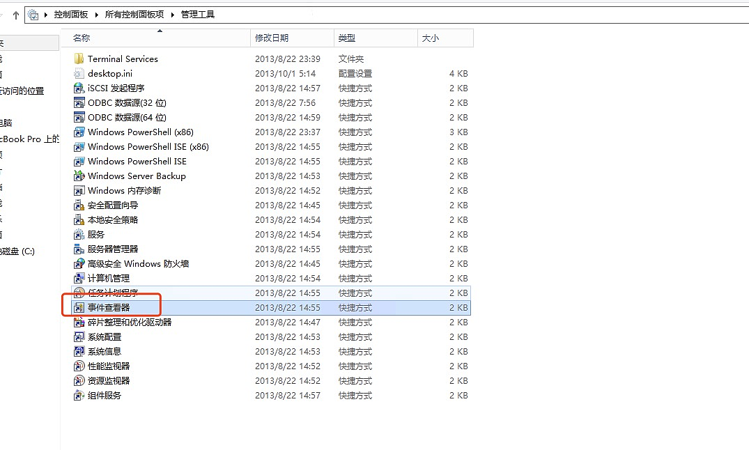 2.修改系统事件的策略,操作步骤是:进入控制面板-管理工具–事件查看器