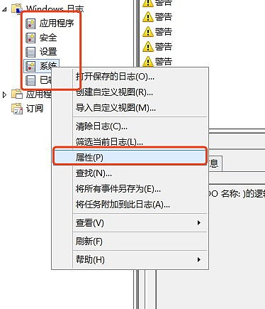 3.展开windows 日志,选择系统右键选择属性