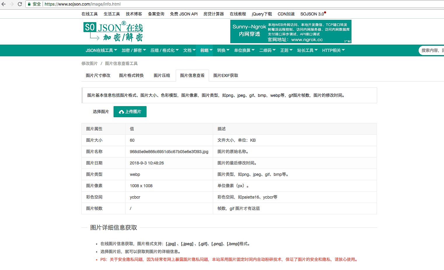 另外如果不打算安装 ffplay 可以找一些在线图片格式检测的网站去检测下