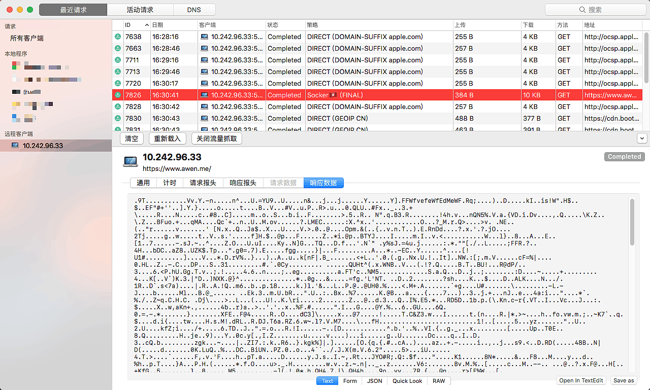 8.打开 Surge 的控制台。手机随便访问个https页面,会在控制台看到远程客户端