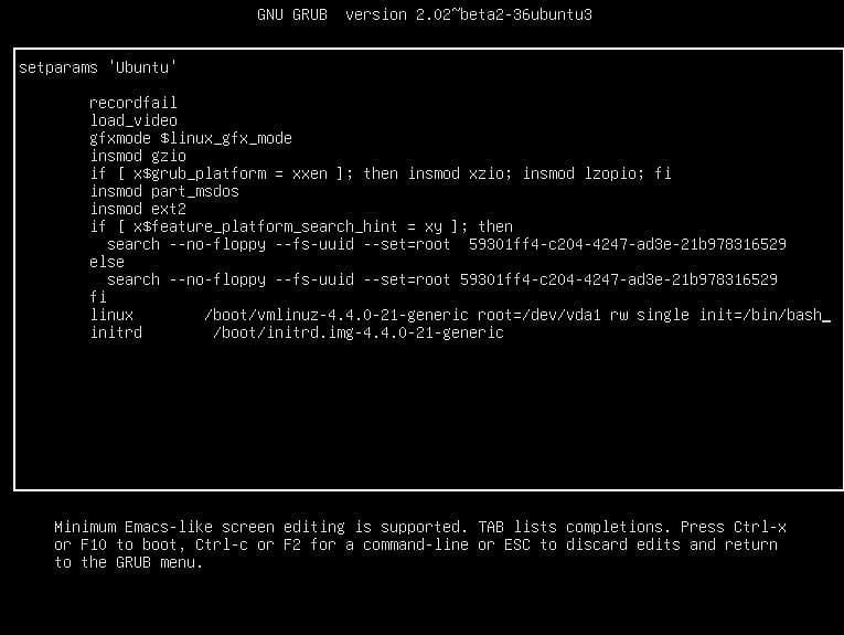 1.同样的从 VNC 进去 重启,按 shift 键盘,然后按e 键进入引导修改成如下图所示,然后按 crtl+x 进入单用户模式