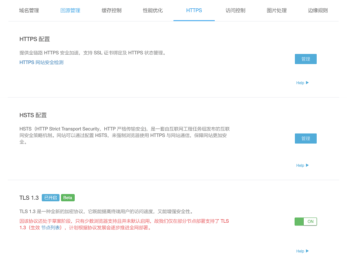 目前又拍云已经率先支持 TLS 1.3,你可以在控制台开启