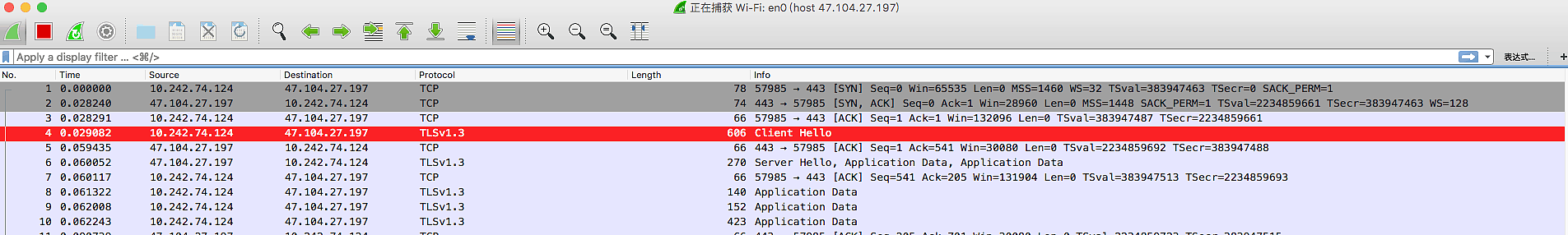 需要说明的是,如需查看 TLS 1.3 的报文,需要使用 2.5 版本的wireshark,可以去 https://www.wireshark.org/download/automated/ 下载