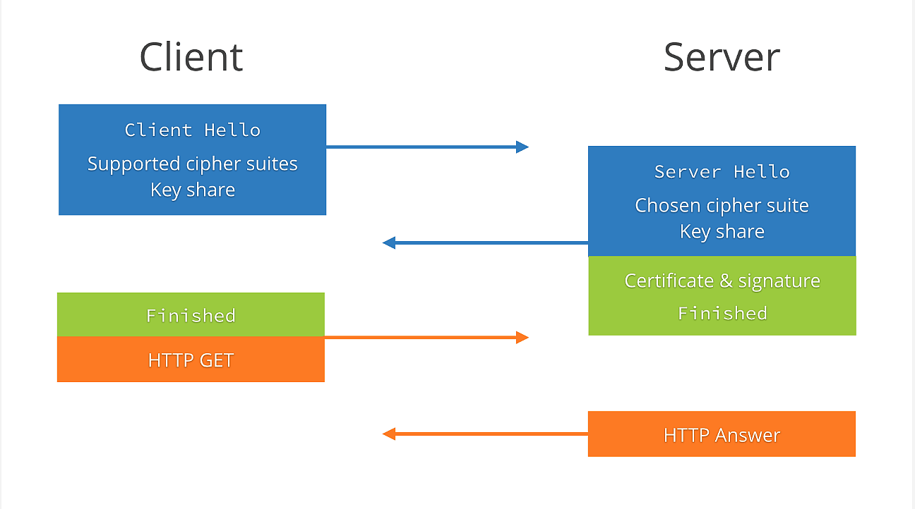 在 TLS 1.3 中,客户端首先不仅发送 ClientHello 支持的密码列表,而且还猜测服务器将选择哪种密钥协商算法,并发送密钥共享,这可以节省很大一部分的开销,从而提高了速度。