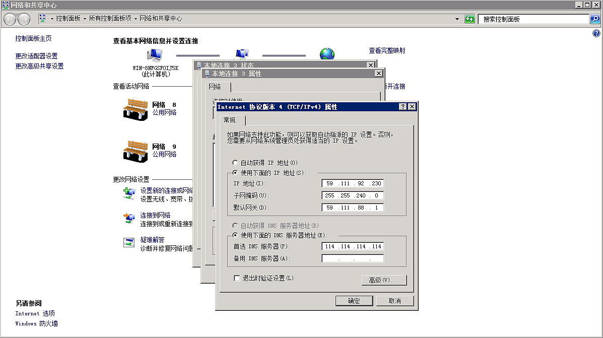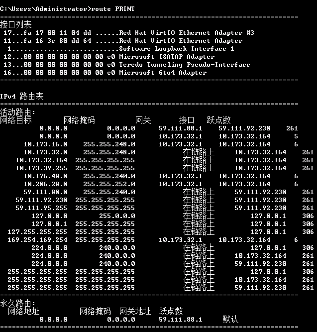 默认网关不显示 ip 的,使用 route PRINT,看第一行的接口是59.111.88.1