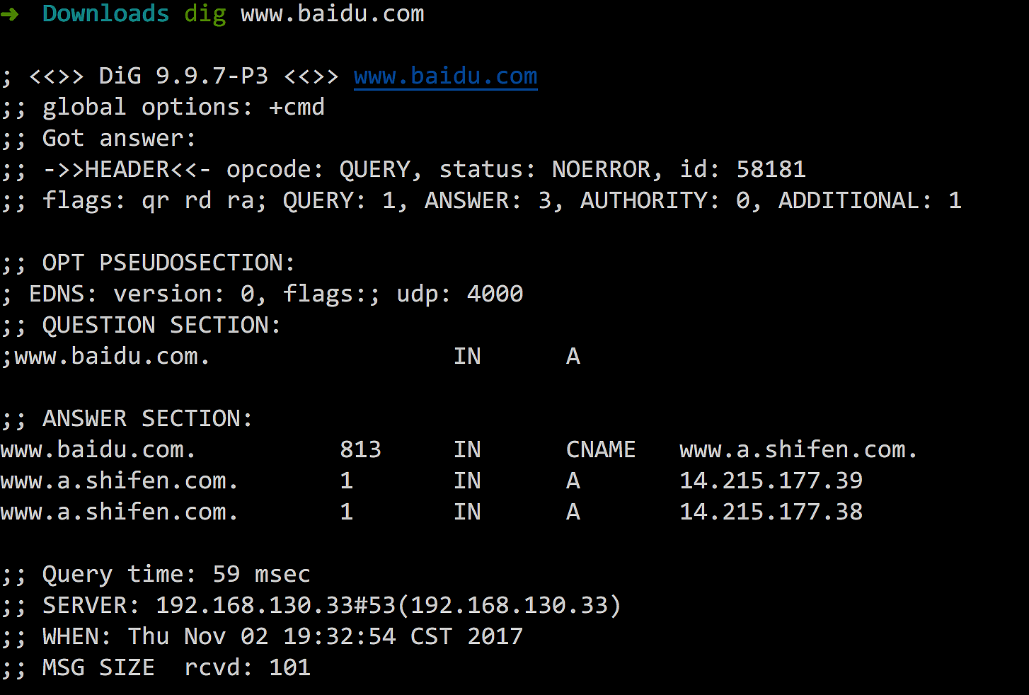 try: domain = dns.resolver.query(domain,"CNAME") for domain in domain.response.answer: for ip in domain.items: #rdtype 为1 表示是A记录 print("该域名解析的IP地址是:"+ip.to_text()) except: print("解析错误:域名参数不正确")