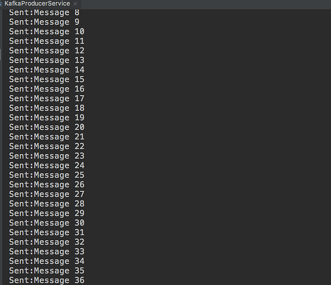 for (int i = 0; i < 100; i++) { String msg = "Message " + i; producer.send(new ProducerRecord<String, String>("test", msg)); System.out.println("Sent:" + msg); }