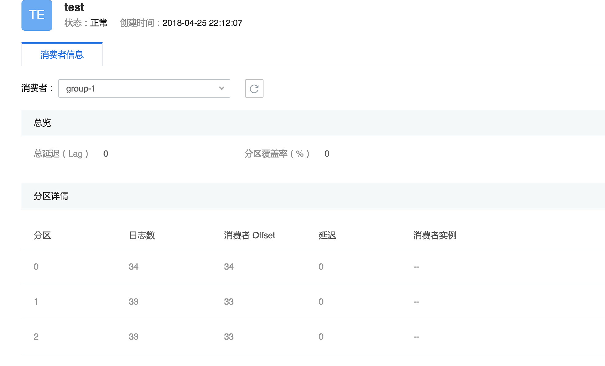 在控制台找到对应的 Topic 可以看到消费者信息