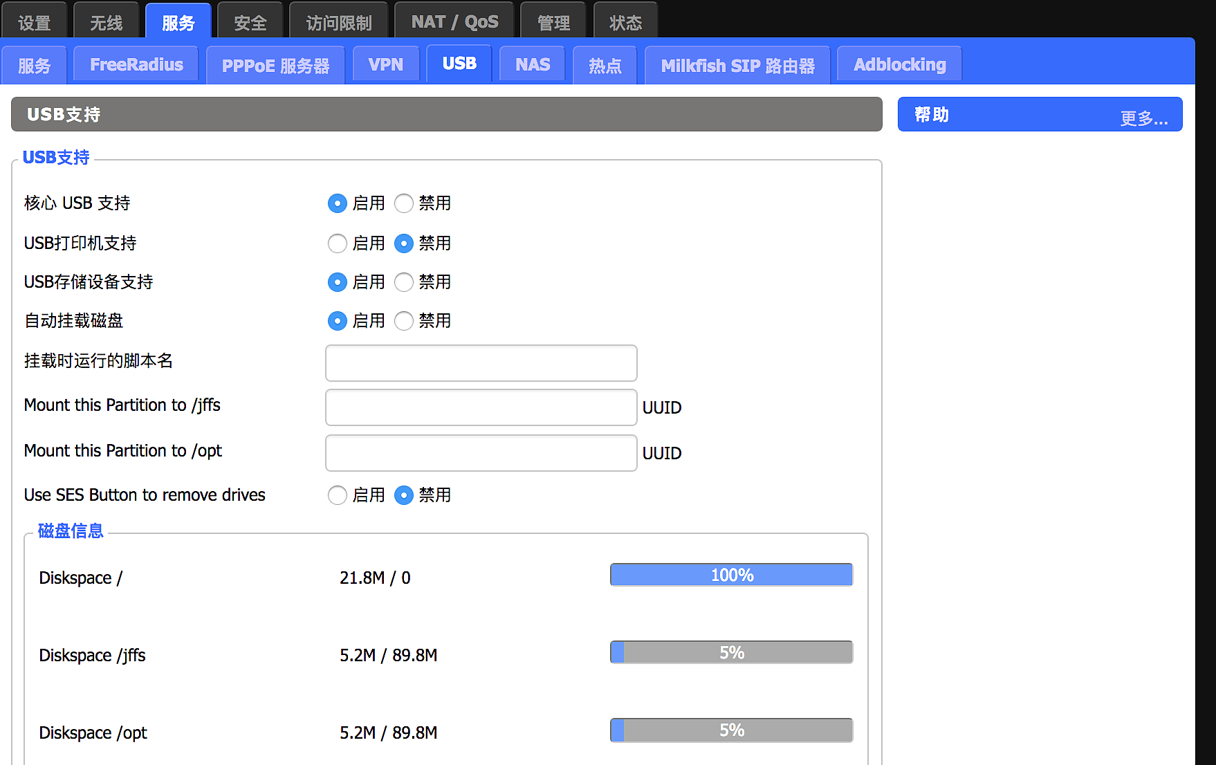 web 控制台切换到 管理,开启 jffs 支持,首次开始要清楚下数据然后重启下路由器看看配置是不是如图所示