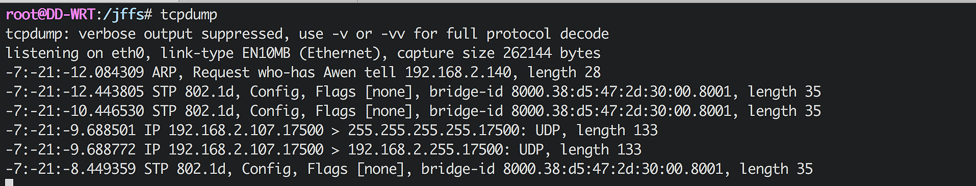 安装完毕后就可以用tcpdump 抓包了