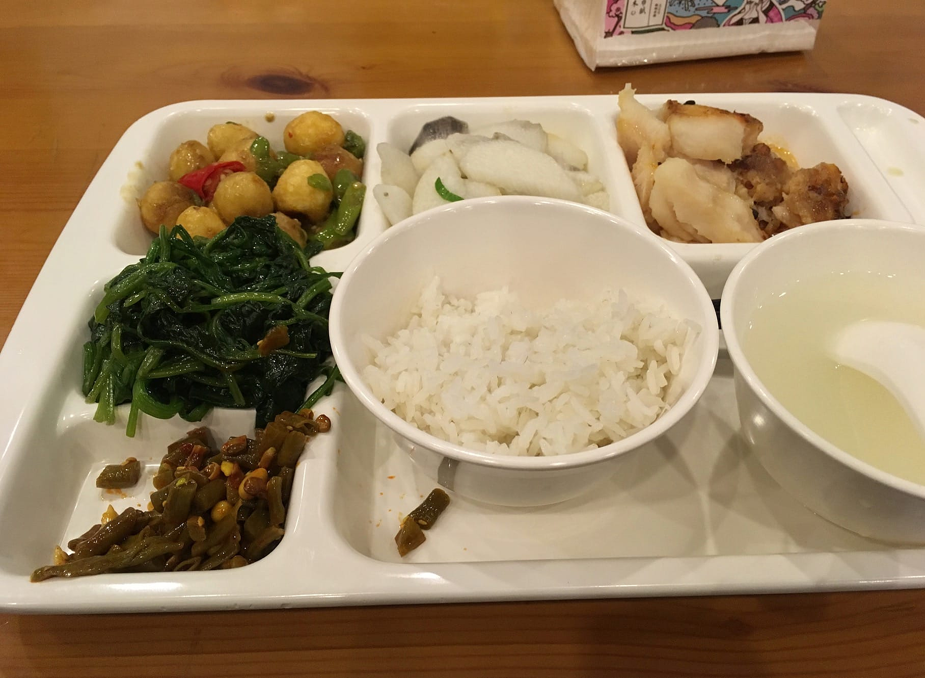 一天三顿都在食堂吃,以一顿饭20块钱的标准计算,伙食还是非常不错的,一个月大概能省一千多伙食费。
