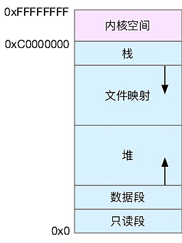 下图,最上方的是内核空间,下方是用户空间。用户空间其实又被分成了多个不同的段。