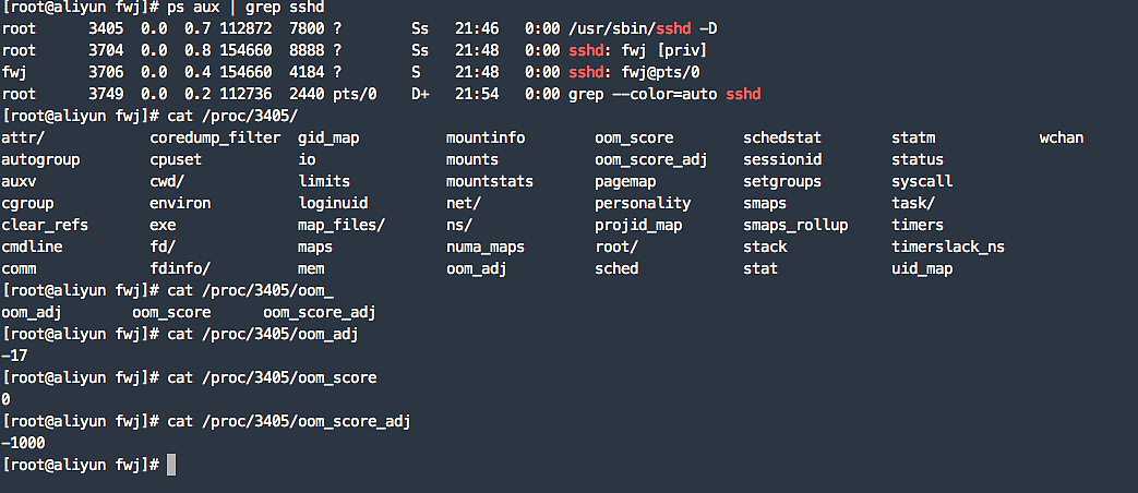 比如用下面的命令,你就可以把sshd进程的oom_ adj 调小为-16,这样,sshd 进程就不容易被OOM杀死。