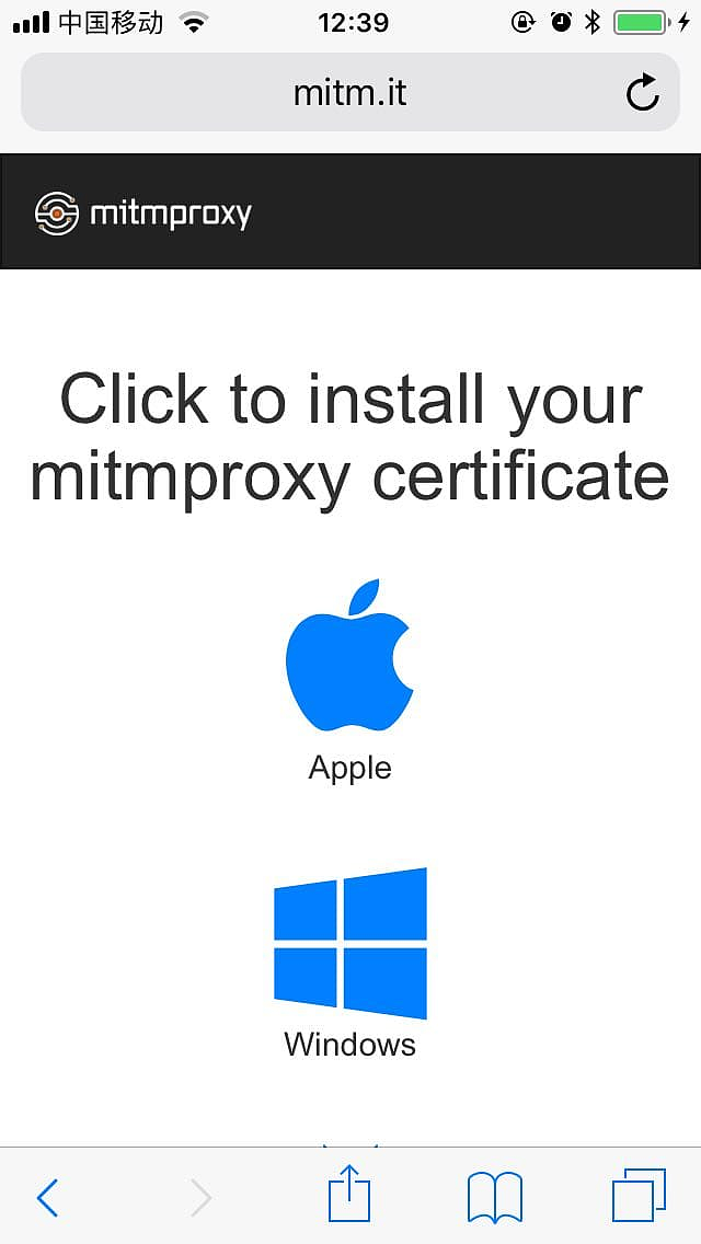 然后手机开启http 代理,设置完代理后访问 mitm.it