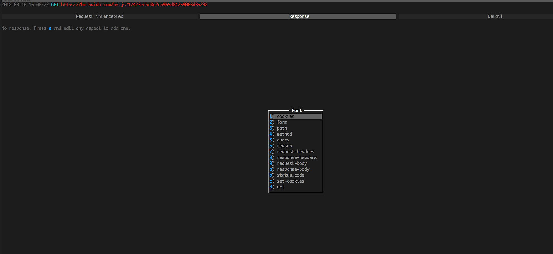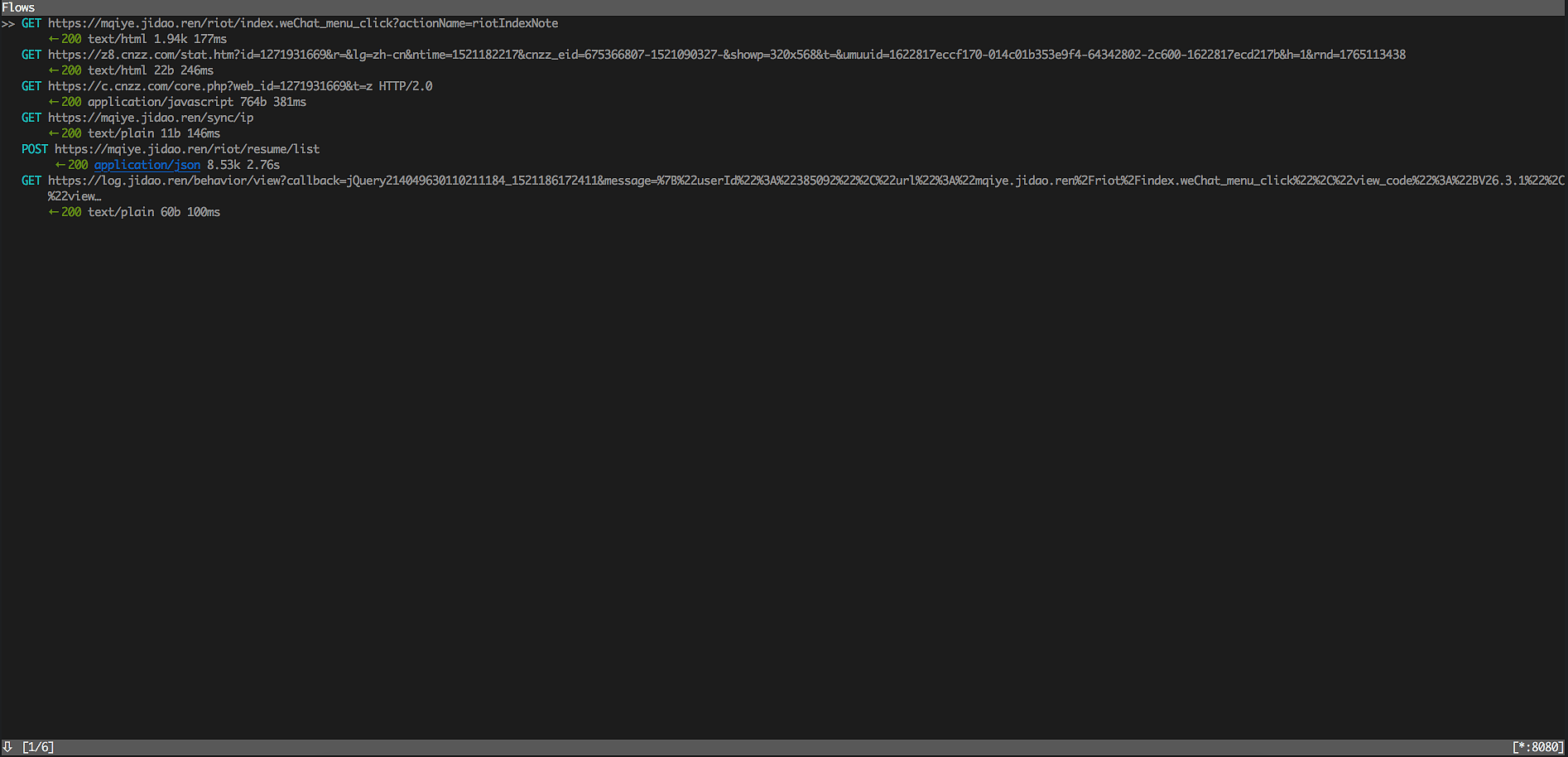 按方向键上下键进入对应的 URL 内查看请求 响应等字段,按左右键切换,按 q 键返回主界面。