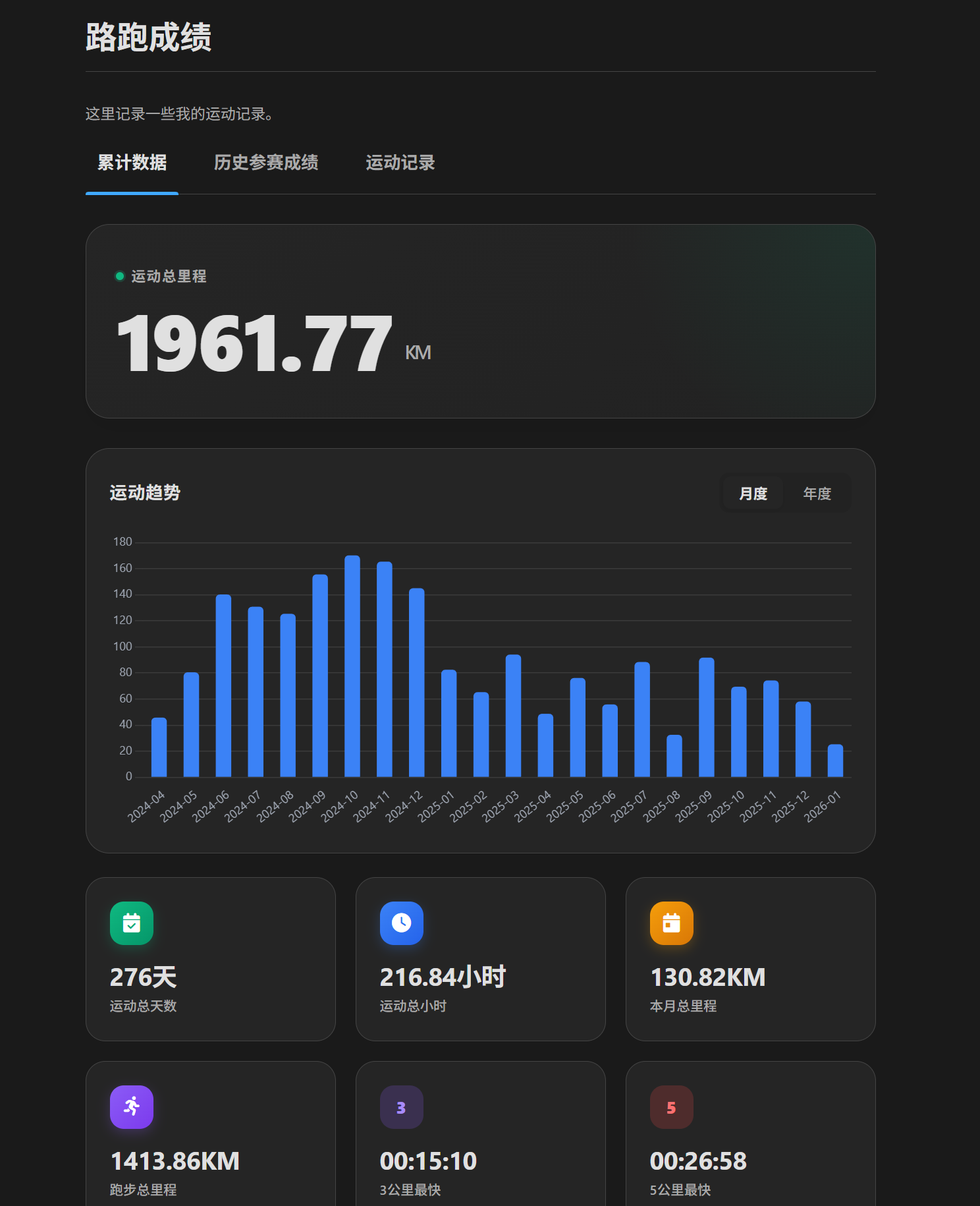 通过 Playwright 和阿里云 OCR,我们成功攻克了带验证码的模拟登录难题;通过直接调用后端 API,我们提高了数据抓取的效率和稳定性。最终结合 Hexo 的数据驱动能力,实现了一个自动化的个人运动数据展示页面。